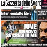 Prendiamo la Gazzetta dello Sport di oggi, il nostro giornale preferito. Prima pagina dedicata a Pirlo con titolo eloquente: “Messaggio di Pirlo. Juve rinnovo se credi in me”. Prosegue: “Il contratto è in scadenza, con la società parleremo alla fine della stagione. Ma devo sentirmi importante: in futuro non accetterei mai di giocare solo 20 partite. Saremo...