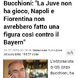 Rieccolo: Bucchioni Enzo da Aulla, direttore di Q.S., in tutto il suo splendore. Colui che ci illumina periodicamente con le sue perle di saggezza e di competenza (a cui noi mortali, che il calcio lo seguiamo da ignoranti e incompetenti tifosi, non potremmo mai arrivare da soli) ci ha deliziati nuovamente. “La Juventus non ha gioco soprattutto se confrontata a Napoli e Fiorentina che contro il Bayern Monaco magari avrebbero perso, ma non avrebbero...